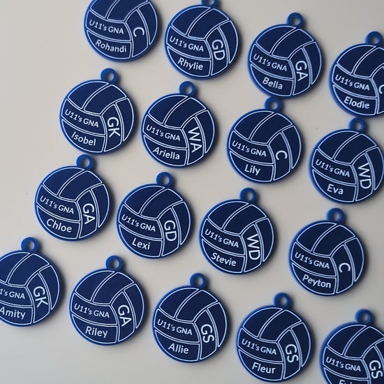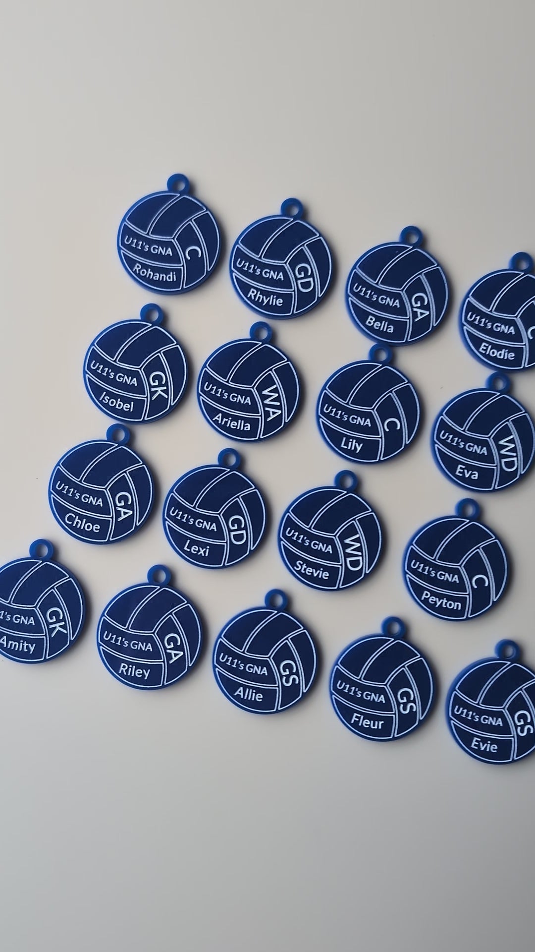 Personalised Netball shape Name Keyrings for your end of season gift.